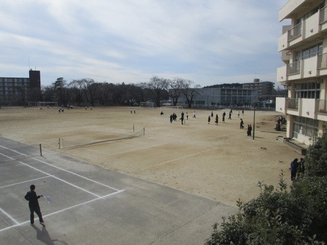 グラウンドを見ると、生徒たちがサッカーやテニス、バレーボール等をして楽しんでいる様子が見られました。