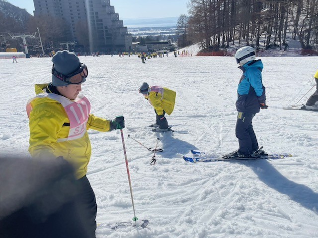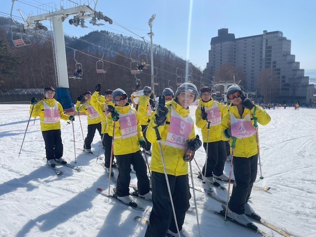 スキー場は天気がよく、生徒たちも気持ちよく滑ることができています。
