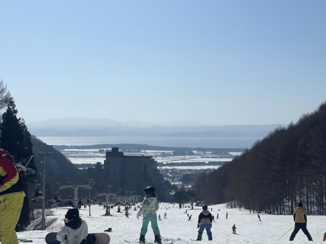 リフトに乗って、山の上にあがると、景色もよく、猪苗代湖もよく見えます。