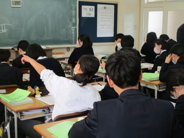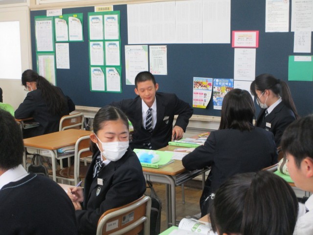 友達と自分の考えを交流していく中で、自らの考えを確かなものにし、学びを深める授業が進められています。