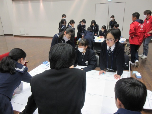 ライオンズクラブ主催の「輝くとりで未来フォーラム」に生徒会執行部が参加しました。市内各校の生徒会役員が集まり、ディスカッションを行いました。第一部では各校の取組を紹介し合い、第二部では市の新イベント「中学生フェスタ」に関するアイデアを出し合いました。他校の生徒会役員から良い刺激を受けつつ、二中や市をよりよくするために積極的にディスカッションに参加することができました。