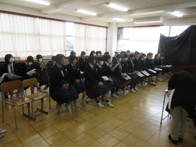 3年生が卒業式での学年合唱の練習をしています。数日後に迫る卒業式をイメージしながら、熱心に練習に取り組む姿が見られました。卒業式当日、すばらしい歌声を響かせてほしいと思います。