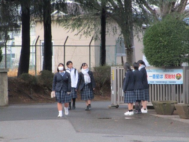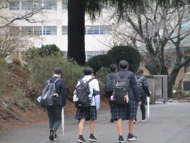 昨日から降っていた雨は止みましたが、「寒い!」という声が生徒たちからも聞こえてくるくらい冷たい風が吹く寒い朝となりました。