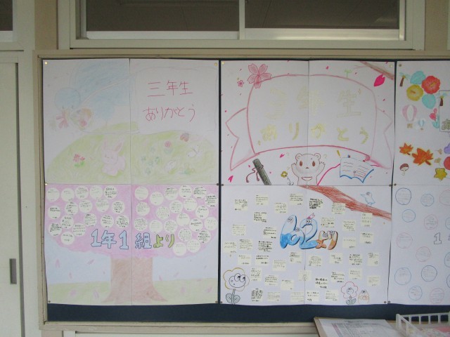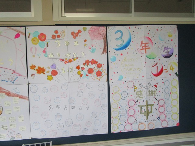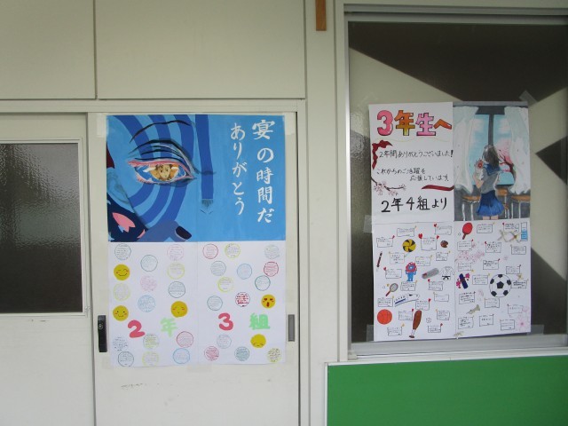 昨日、行われた送る会で3年生のために在校生が作成したメッセージが3年生の廊下に掲示されています。