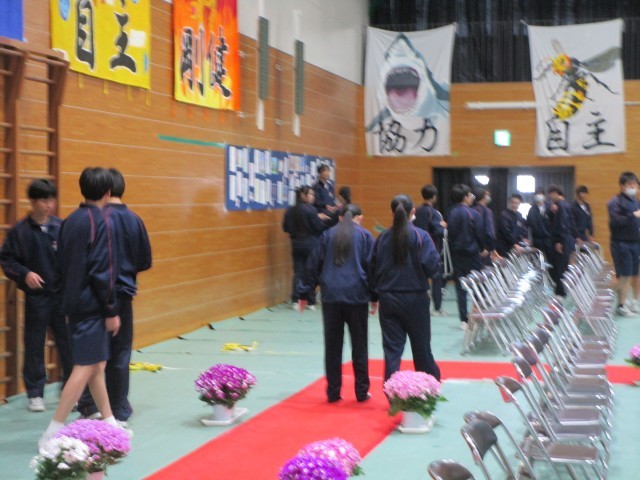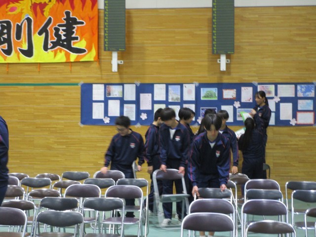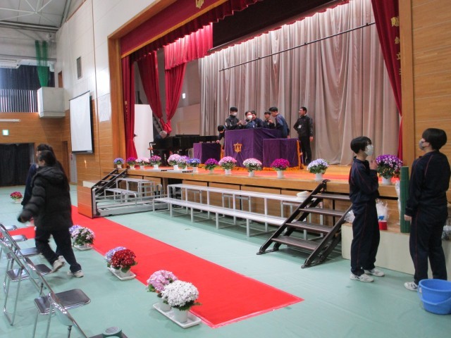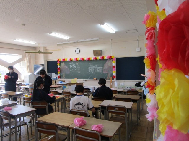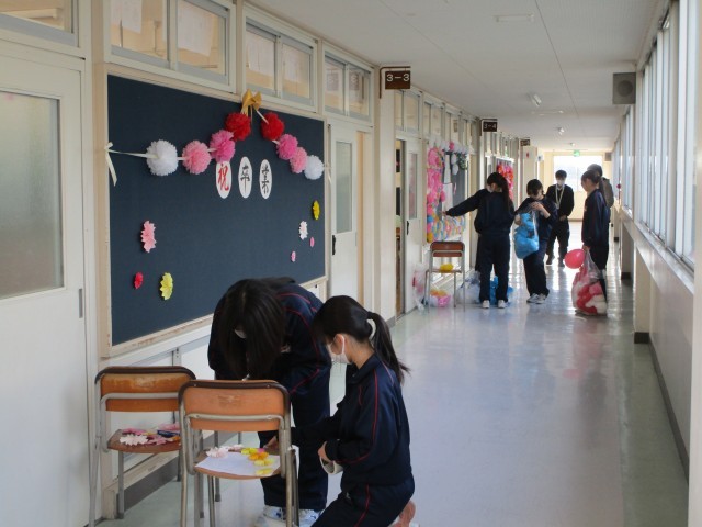 3年生のみなさんは、在校生が「3年生のために!」という思いでつくった明日の卒業式当日の教室の環境、体育館会場等をしっかりと見て、感じ、卒業式に臨んでください。