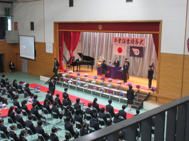 とても寒い朝となりましたが、会場は在校生、保護者、来賓の皆様等、多くの皆様に温かく見守られながら、厳粛ながらも温かな雰囲気の中、思い出に残る卒業式を行うことができました。