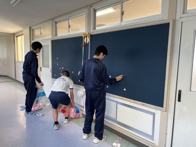 今度は2年生が… 公開日 2026/03/12 更新日 2026/03/11 2年生 3年生が巣立った後の教室を、2年生がきれいに清掃してくれています。限られた時間の中で、黙々と働いている姿が頼もしいです。