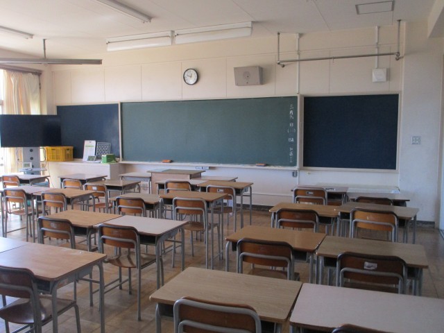 火曜日まで生徒たちの元気な声が聞こえ、笑顔が見られた教室も今は、ひっそりと静まり返っています。