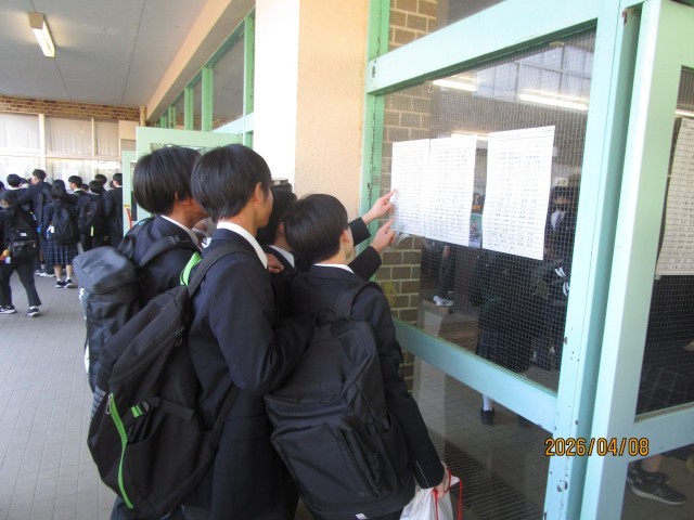 新しい学級の発表があり、歓声を上げたり、ガッツポーズをしたりする姿が見られました。