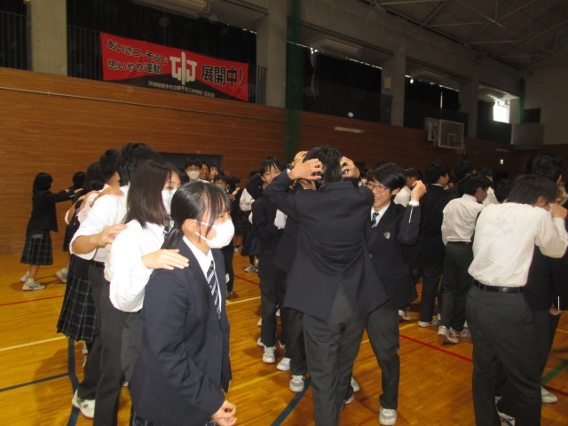 本日、生徒会交流行事として全学年でのじゃんけん列車とクイズ大会が行われました。他学年の生徒とのじゃんけんに、始めは緊張も見られましたが、最後は、楽しそうにじゃんけんする姿が見られて本当に良かったです!じゃんけん優勝者は、一年生!!おめでとうございます。そして、生徒会の皆さん!楽しい交流会をありがとうございました。
