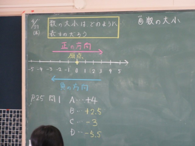 【1年生】数学:数の大小はどのように表すの? 公開日 2026/04/23 更新日 2026/04/23 1年生 数学では、正の数、負の数を学習し、数の大小を学びました。数直線上に数字を表し、マイナスの数についての理解を深めました。これから、マイナスの計算がバンバン出てきますよ!みんながんばって! +1