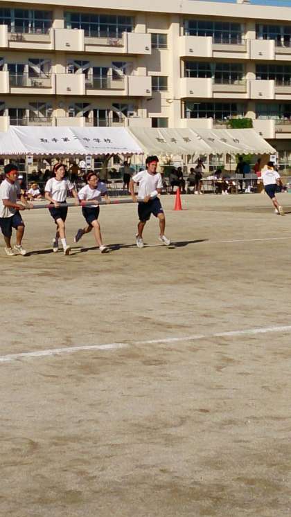 いよいよ本番! 公開日 2015/09/11 更新日 2015/09/11 PTA 雨が心配されましたが,無事予行を迎えることができました。久しぶりの外での練習で生徒に疲れの見られる様子も見られましたが,どの団も意欲的に競技に取り組み,協力し合う姿勢が見られました。明日は,今日の反省点を生かし,最高の演技をしてくれると思います。3年生にとっては,最後の体育祭となりますので,最高の思い出に残る体育祭になることを祈ります。 学校行事