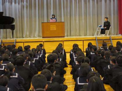 新任式・始業式 4/8 公開日 2019/04/08 更新日 2019/04/08 PTA 新しい先生方をお迎えして,いよいよ新学期が始まりました。生徒代表の発表に,「頼られる先輩になりたい。」,「中学最後の学年なので,行事も学習も,悔いの無いよう頑張りたい。」とありました。蛯原校長先生からは,「二中生として,プライドをもって生活していこう。」と。静かな緊張感をもって,1学期が始まりました。 学校行事