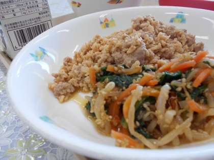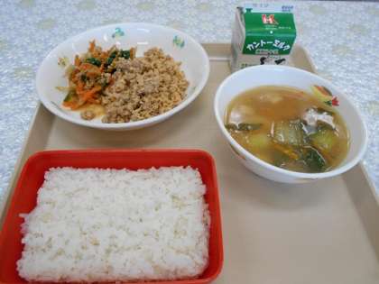 今日の給食 公開日 2019/05/08 更新日 2019/05/08 CS(学校運営協議会) 麦ごはん ビビンバ(鶏そぼろ,ナムル) トック 牛乳 ビビンバの鶏そぼろは,ガーリック風味でおいしかったです。 ごちそうさまでした!!