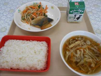 ごはん さばの味噌煮 ごま和え 沢煮椀 牛乳