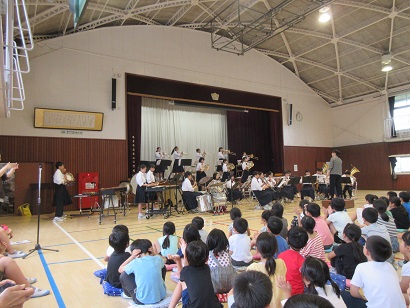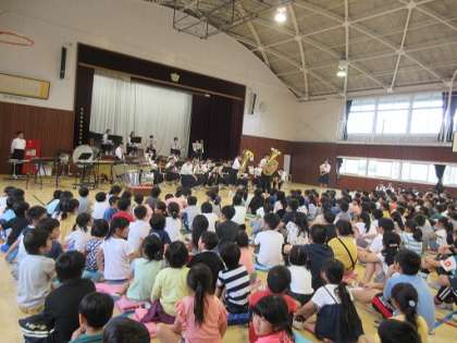 小中連携・吹奏楽部6/7 公開日 2019/06/10 更新日 2019/06/10 PTA 吹奏楽部が,白山小学校で演奏しました。小学生もよく知っている楽曲を演奏したので,盛り上がりました。楽器ごとに「曲当てクイズ」を行ない,楽器について紹介しました。演奏している生徒達も楽しませようと,頑張りました。いい時間でした。 学校行事