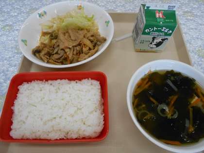 ごはん プルコギ ざくざくキャベツ わかめスープ 牛乳