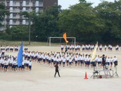 行進も本気です 公開日 2019/09/04 更新日 2019/09/04 学校行事 今日の練習のスタートは,全体練習です。 各団とも3年生を中心に行進の練習をしています。 心一つに全生徒が行進する姿は,見ていて 感動の一言です。 体育祭当日は,最高の行進を全生徒が お見せいたします。