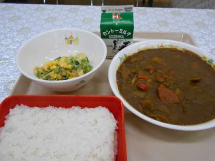 ごはん 茨城の根菜カレー コーンサラダ 牛乳