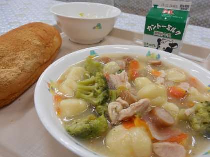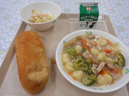 きなこ揚げパン ニョッキのポトフ キャベツとツナのサラダ
