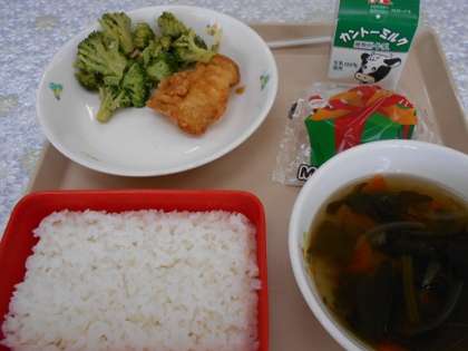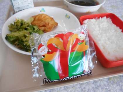 令和元年最後の給食 公開日 2019/12/24 更新日 2019/12/24 CS(学校運営協議会) ごはん 鶏肉のレモン煮 ブロッコリーのにんにく炒め すまし汁 ミニケーキ 令和元年最後の給食となりました。いつも温かくおいしい給食を提供していただき心より感謝いたします。令和2年もおいしい給食をよろしくお願いいたします。ありがとうございました。 ごちそうさまでした!! エネルギー 860㎉ 塩分 3.0g