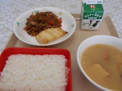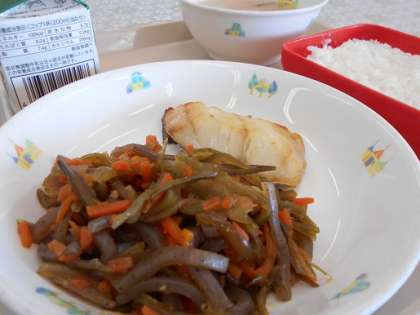 ごはん ホッケの塩焼き 茎わかめに炒め煮