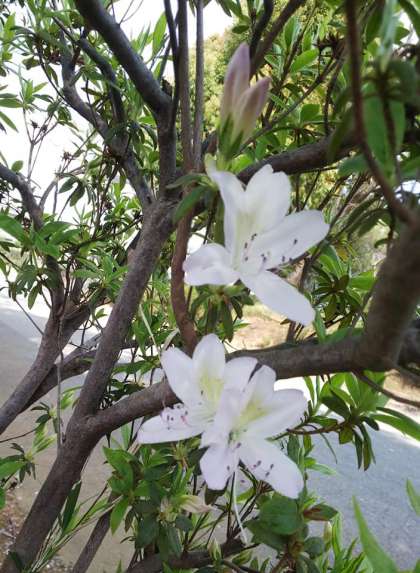 4月10日(金)学校のツツジが開花しています。例年より早めの開花で、サツキもちらほら咲き始めました。ツツジの花言葉は、「慎み」「節度」。不要不急の外出を控え、節度ある行動を心がけてください。