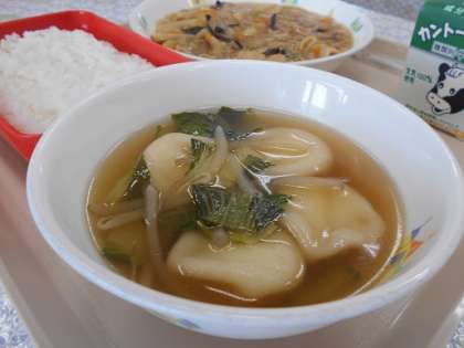 餃子スープの餃子は,皮はもちもち,中はジューシーで