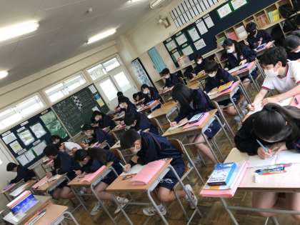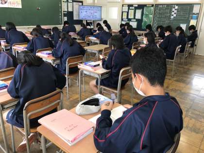 2年生 授業風景 公開日 2020/06/25 更新日 2020/06/25 学校行事 2年生の英語の授業では、真剣にノートを書く姿が見られました。机の上も整えながら、学習のルールを守って授業に臨んでいます。 2年生