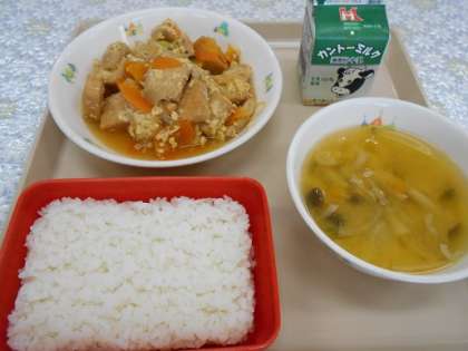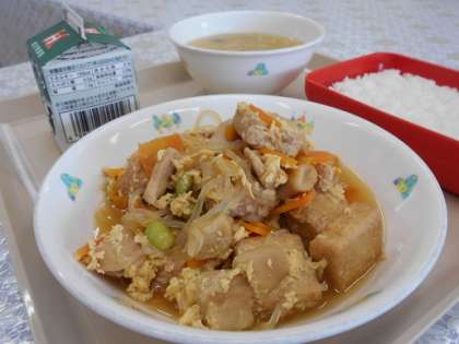 ごはん 親子煮 ごま汁 牛乳 エネルギー 862㎉ 塩分 2.9g