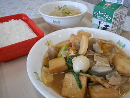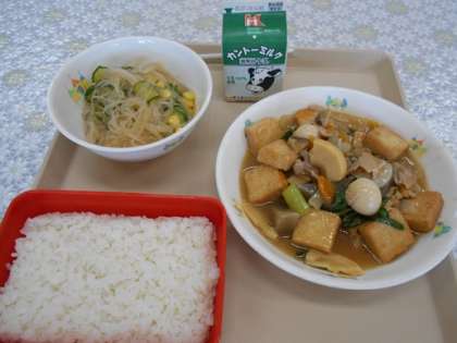 ごはん 生揚げの中華煮 春雨サラダ 牛乳 エネルギー 846㎉ 塩分 2.4g