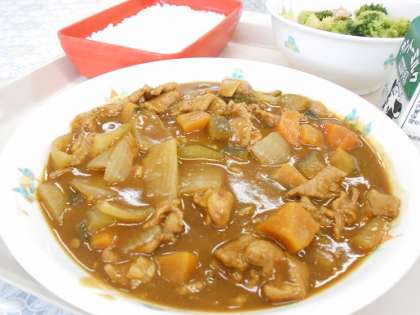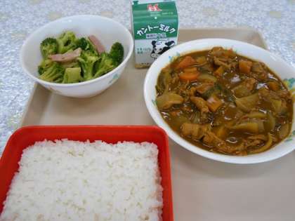 ごはん 夏野菜のカレー ブロッコリーのガーリックソテー