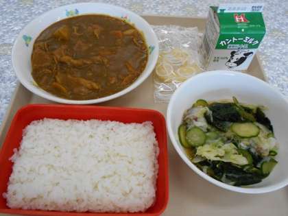 カレー 公開日 2020/08/19 更新日 2020/08/19 CS(学校運営協議会) ごはん カレー 海藻サラダ 冷凍パイン 牛乳 夏はカレーが合います。久しぶりの給食は,とてもおいしかったです。 ごちそうさまでした!!