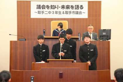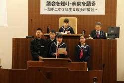 今年も「議会を知り・未来を語る」活動が始まりました! 公開日 2020/08/28 更新日 2020/08/28 PTA 8月28日(金)3年生は、今年で5年目になる「議会を知り・未来を語る」学習をしました。本日は、オリエンテーションで、学習のねらいを確認した後、過去に二中生が議会で発言した様子や採決の様子を動画で見ました。 これから「住みよい取手をつくるための提言」を考え、市議会委員の方々と進めていきます。模擬議会は12月に行われる予定です。