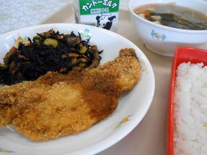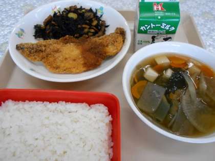 ごはん あじフライ ひじきの炒め煮 けんちん汁 牛乳