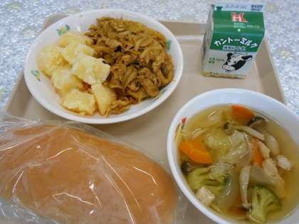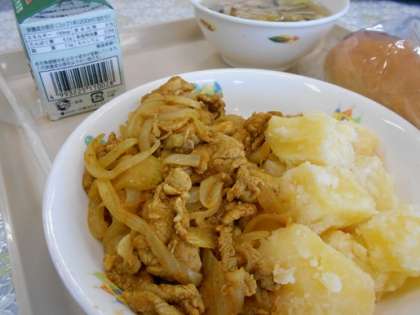 コッペパン 豚肉とセロリのケチャップ炒め 粉ふきいも