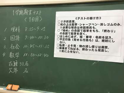 明日は1学期期末試験 公開日 2020/09/07 更新日 2020/09/07 PTA 明日は1学期期末試験です。 今日は6時間目の後に30分間の学力アップタイムも実施されました。 黙々と勉強に取り組む生徒や、わからないところを教え合っている生徒もいました。 明日の試験に備えて、夜更かしせずにしっかり寝てください。