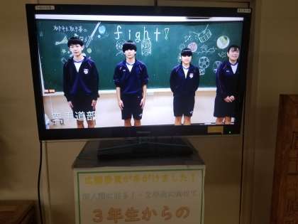 応援メッセージを流しています。 公開日 2020/09/15 更新日 2020/09/15 学校行事 新人戦がいよいよ近づいてきました。校長室前では,新人戦に出る1・2年生に向けて,広報委員が作成した応援メッセージの動画を流しています。応援を力にして各部活動で全力を尽くしてほしいと思います。 学校行事