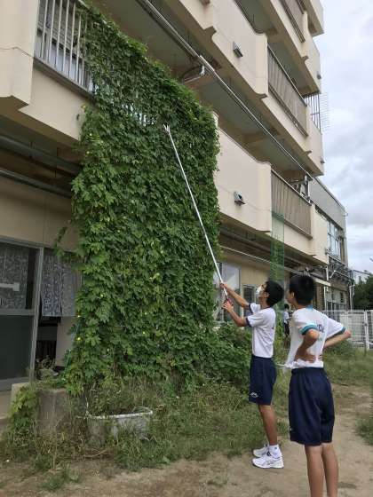 緑のカーテン 公開日 2020/09/17 更新日 2020/09/17 PTA 気温も低く過ごしやすい1日でした。 しかし緑のカーテンからはゴーヤがまだまだ収穫できます。 今年はミニトマトも豊作でした。