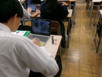 技術科の授業の様子です。マイクロビットを使っての学び。以前にはなかった内容も学習に入るなど、技術の進歩・発展を感じます。生徒たちが意欲的に学習に取り組む姿が見られました。