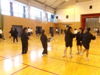1年生の体育の授業の様子です。ダンスを踊るためのリズムキープについて学びました。生徒たちは、グループで話合い、どのようにしたら上手に踊れるのかを考えながら練習に取り組む様子が見られました。