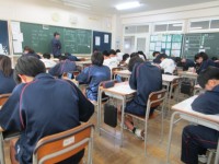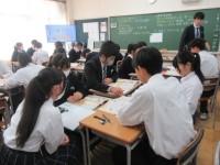 司法について学んだことをいかした授業でした。生徒たちは、事例について、被告人が有罪なのか無罪なのか、また、その根拠についてグループごとに考え、まとめていました。生徒たちの考えをまとめたホワイトボードを...