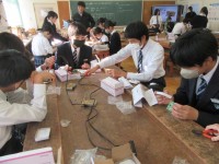 電子部品のはんだづけを行いました。一か所でも間違えてつけてしまうと、動かなくなる電子部品だということです。生徒たちは、設計図をよく見て、集中してはんだづけを行っていました。完成がとても楽しみです!