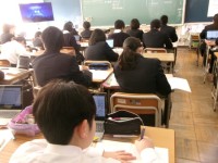 どの学級も落ち着いた雰囲気の中、授業が進められています。タブレット端末を活用したり、グループで話し合ったりなど、生徒たちが意欲的に学習に取り組む様子が見られます。