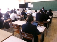 1年生と2年生は、昨日に引き続き、県学力診断のためのテスト第2日目が実施されています。問題に一生懸命に取り組む生徒たちの姿が見られます。
