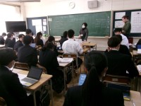 3年生の社会科の授業の様子です。模擬試験の解答をもとに分からない問題はお互いに確認や教え合いながら取り組む様子が見られました。これから受験を迎える生徒も多く、学級みんなで最後まで一生懸命に頑張ろうとい...