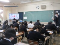 資料をもとに日露戦争当時の外交関係について読み取り、考えました。生徒たちは、その当時の日本や世界の国々の状況や日本の外交に関する方針を考え、学ぶことができました。