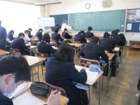 1年間の学習を振り返り、確実な定着と課題となった部分の確認等を頑張る1年生です。 2年生に向け、生徒たちが問題練習に意欲的に取り組む姿が見られました。