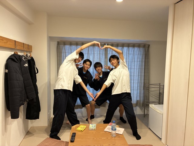 部屋の仲間と絆を深めています。