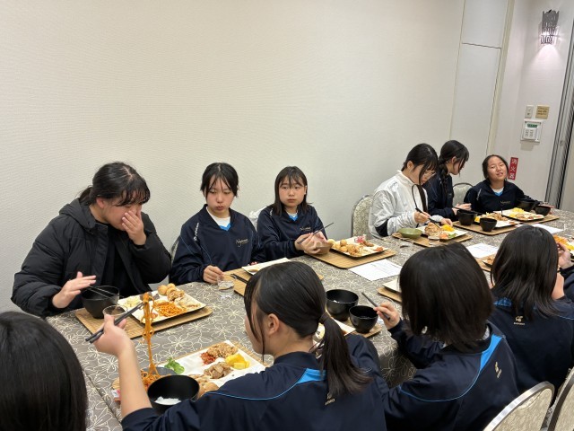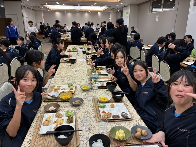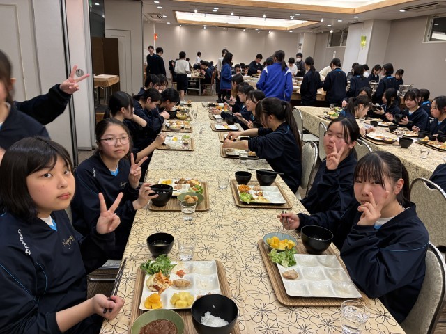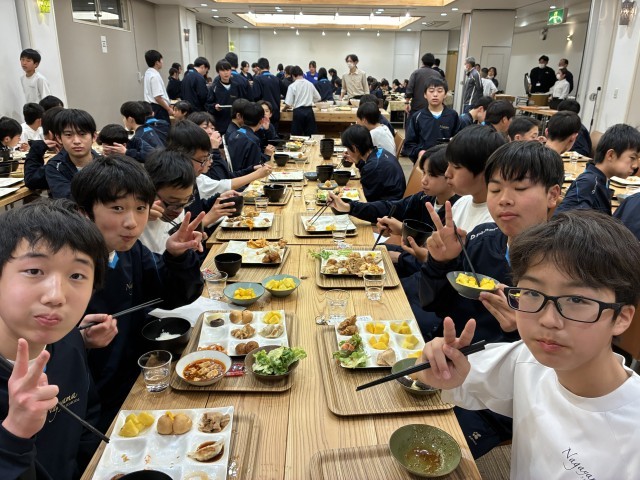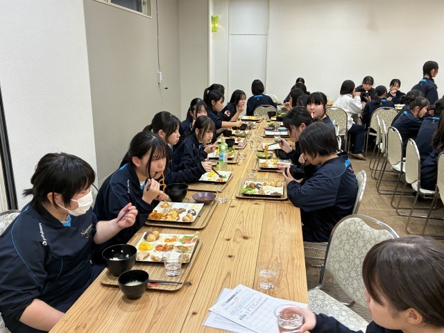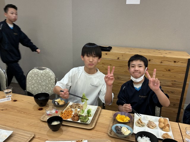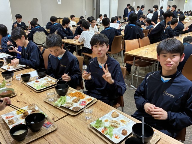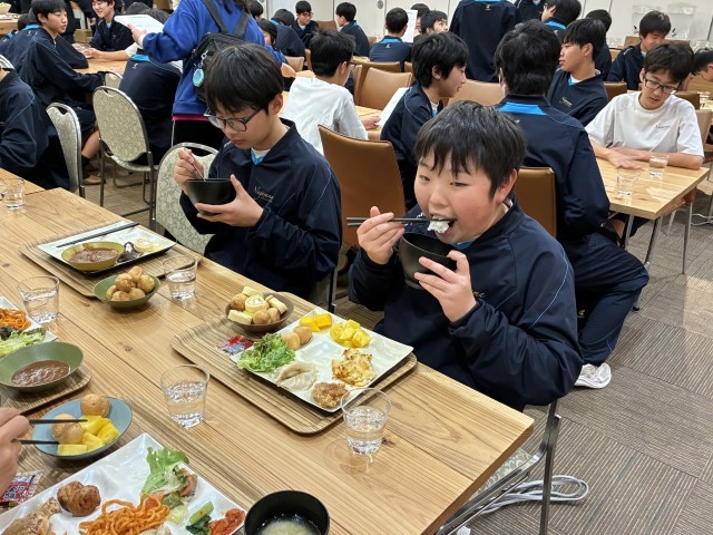 ビュッフェ形式で生徒たちはお腹いっぱい食事をしました。